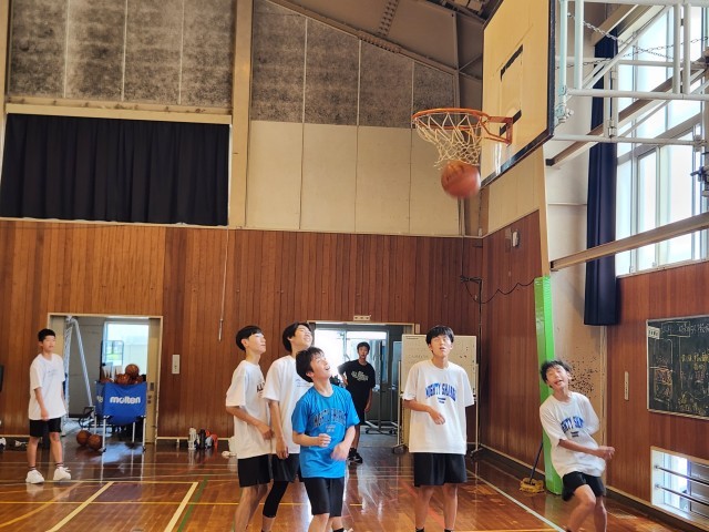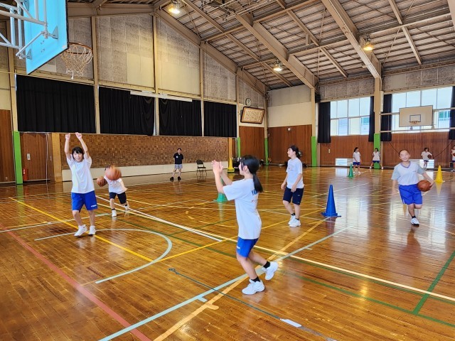 8月5日(火)の部活動・その3 公開日 2025/08/05 更新日 2025/08/05 部活動 8月5(火) 12:00 男女バスケットボール部は、パスをつないでからのシュート練習に取り組んでいました。暑いですが、皆、よく動いています。顧問の熱い指導の声も体育館に響いていました。 +2