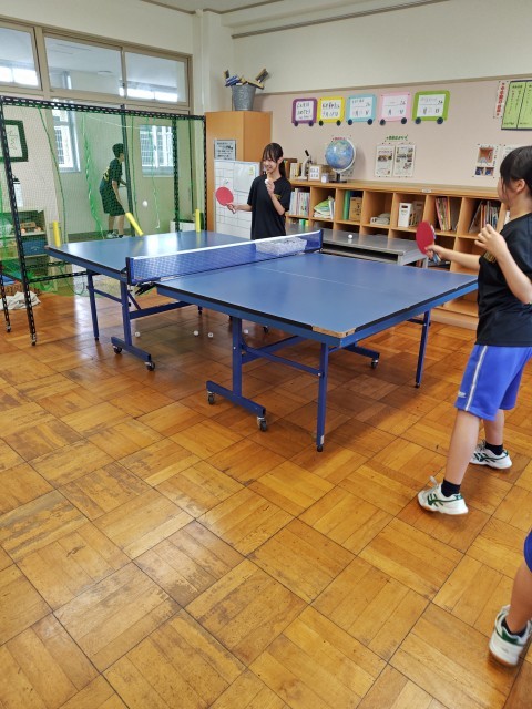 8月6日(水)の部活動・その2 公開日 2025/08/06 更新日 2025/08/06 部活動 8月6日(水) 10:00 卓球部は、スマッシュの精度を上げるために、台の上に立てた棒を狙って球を打つ練習をしていました。球が命中するたびに歓声が上がりました。