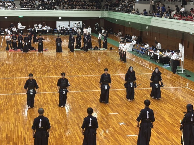 北信越大会・剣道部・その2 公開日 2025/08/08 更新日 2025/08/08 部活動 8月8日(金) 14:00 福井県立武道館で行われている剣道部の北信越大会では、男子団体戦予選リーグが終了しました。全ての試合に勝利し、一位通過で決勝トーナメントに臨みます。