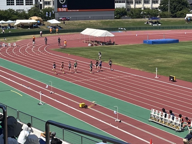 北信越大会・陸上競技部・その2 公開日 2025/08/08 更新日 2025/08/08 部活動 8月8日(金) 14:00 福井市の9.98スタジアムで行われた北信越大会の1年100m決勝では、12秒01のタイムで7位入賞しました。応援、ありがとうございました。