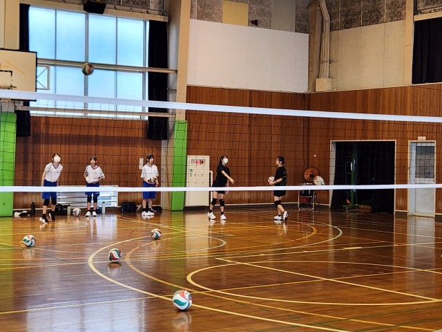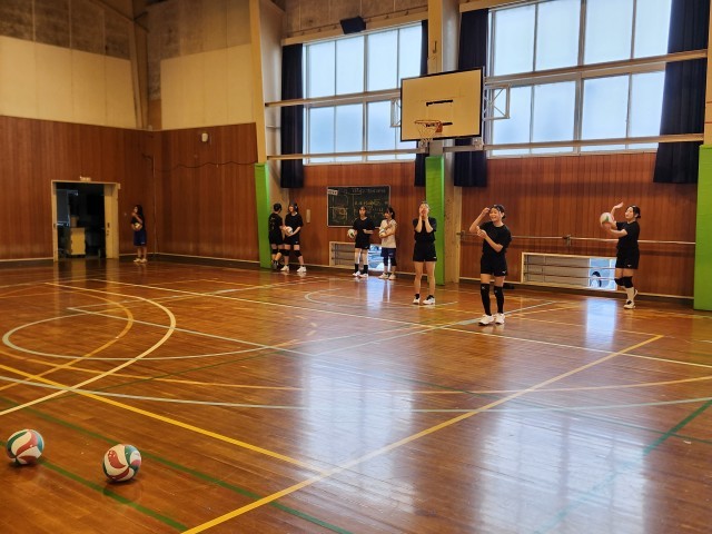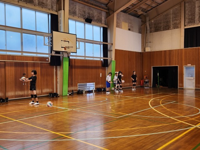 8月12日(火)の部活動・その3 公開日 2025/08/12 更新日 2025/08/12 部活動 8月12日(火) 10:00 体育館は、気温が以前より低くなり、活動しやすいです。バレーボール部は、サーブ練習に取り組んでいます。一人一人の課題を克服するために、声を掛け合いながら練習していました。