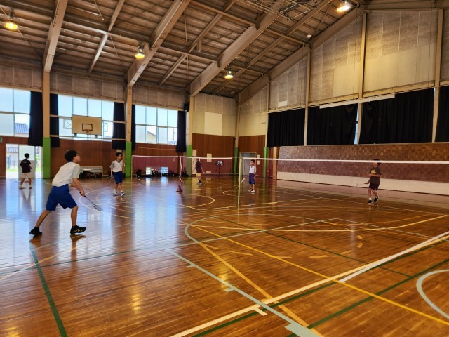 8月18日(月)の部活動・その2 公開日 2025/08/18 更新日 2025/08/18 部活動 8月18日(月) 10:00 男子バドミントン部は、体育館で練習を行っています。2年生が1年生に練習の指示を出しながら、基礎打ちを丁寧に行っていました。