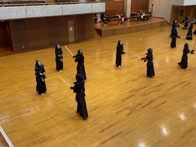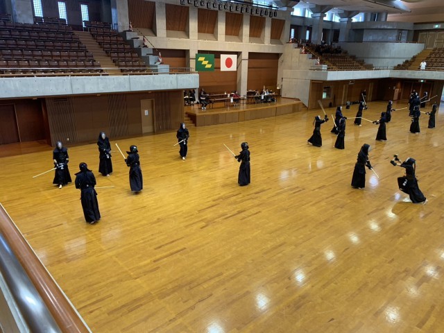 剣道部・全国大会・前日練習 公開日 2025/08/23 更新日 2025/08/23 部活動 8月23日(土) 12:50 「ひなた武道館」で前日練習を行っています。写真から生徒たちの気合が伝わってきます。