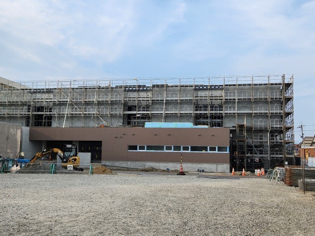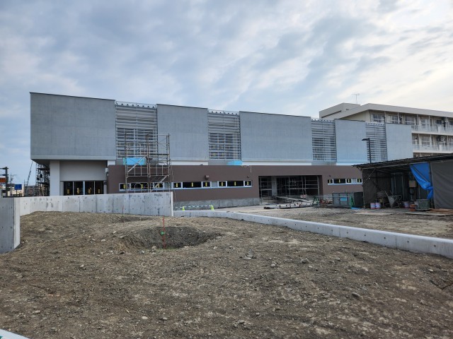 新体育館工事も所々、足場が取り払われ、素敵な外壁が現れています。