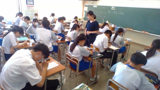 1年・授業風景 公開日 2025/08/29 更新日 2025/08/29 1学年 8月29日(金) 4限 1年生の授業の様子です。問題に取り組むときは集中して、みんなで教え合うときは賑やかに、メリハリをつけて頑張っています。 (写真 1枚目:1年2組 理科「ものの浮き沈み」)(写真 2枚目:1年3組 社会「天平文化」)(写真 3,4枚目:1年4組 英語(少人数)「夏休みの思い出を伝え合おう」) +1