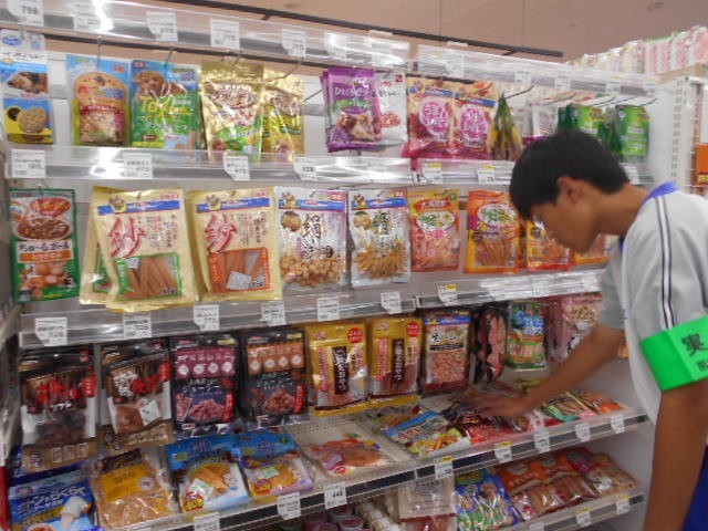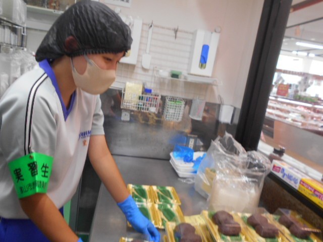 初日はそれぞれ、お惣菜担当としてお弁当やおはぎを詰める作業、日配担当として店頭のドリンクや商品を手前に出す「前出し」を体験しました。