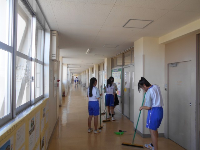 社会に学ぶ「14歳の挑戦」・校内活動 公開日 2025/09/02 更新日 2025/09/02 2学年 9月2日(火) 2日目 【山室中学校で奉仕活動】事業所が定休日等の生徒は学校で奉仕活動を行いました。校舎内外の清掃や掲示物づくり、グラウンドや花壇の除草等を行いました。暑い中、熱中症に気を付けながら、普段見過ごしているところまで徹底的にきれいにしました。