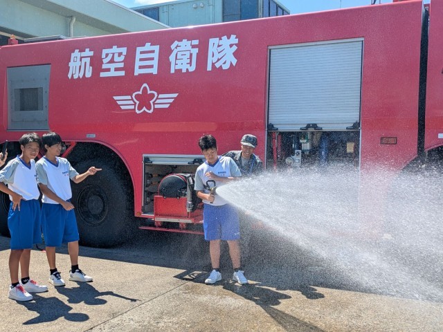 社会に学ぶ「14歳の挑戦」・自衛隊 公開日 2025/09/02 更新日 2025/09/02 2学年 9月2日(火) 2日目 【自衛隊】今日はバスツアーで小松基地を見学させてもらいました。除雪車に乗って装置を動かしてみたり、放水体験をしたりと、数多くの活動を行いました。初めての体験ばかりで、生徒は興味津々で活動していました。 +1