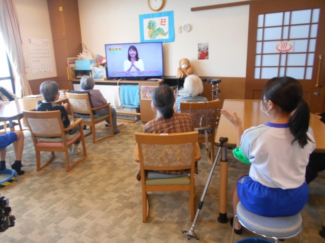 社会に学ぶ「14歳の挑戦」・射水万葉会天正寺サポートセンター 公開日 2025/09/03 更新日 2025/09/03 2学年 9月2日(火) 2日目 男女分かれての活動でした。男子は送迎に同行。女子は利用者様とテレビを見ながら、一緒に体操などをしました。お話して笑顔になってくれると嬉しいし、楽しく感じると言っていました。