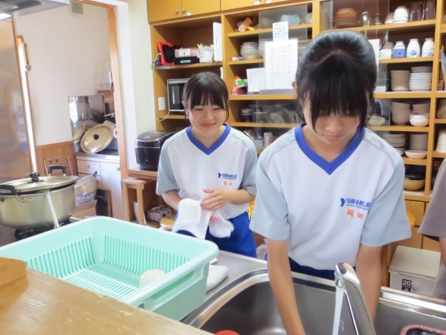社会に学ぶ「14歳の挑戦」・このゆびとーまれ 公開日 2025/09/03 更新日 2025/09/03 2学年 9月3日(水) 3日目【このゆびとーまれ】 福祉事業所で利用者の方の話し相手や食事の介助をしています。(写真は食事後の食器の片づけをしているところです。)午後からは小学生の利用者も来てにぎやかになります。いろいろな方との交流をもって多くのことを学んでいます。