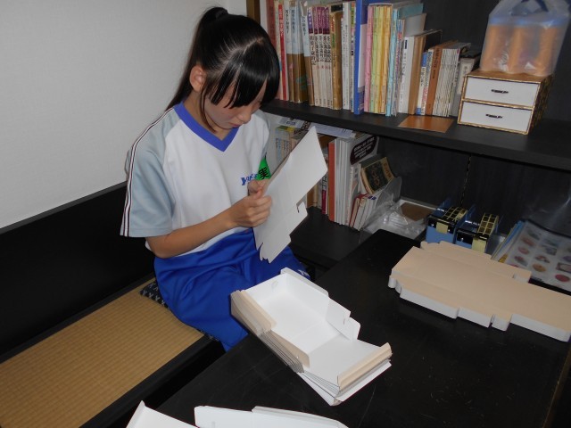 社会に学ぶ「14歳の挑戦」・菓子匠平安堂 公開日 2025/09/03 更新日 2025/09/03 2学年 9月3日(水) 3日目【菓子匠平安堂】今日の活動では、お客様に納品するお菓子を箱につめたり、菓子箱を組み立てたりしました。集中力を切らさず、黙々と作業に励みました。