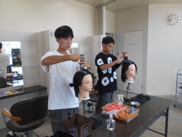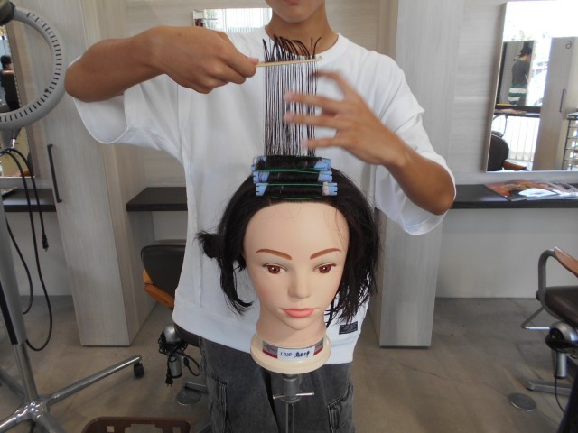 社会に学ぶ「14歳の挑戦」・hair Studio lien 公開日 2025/09/03 更新日 2025/09/03 2学年 9月3日(水) 3日目【hair Studio lien】午前中はお客様の対応、お茶出しをしました。午後からはパーマの巻き方を教わり、練習に取り組んでいました。櫛やロッドをうまく使って、作業に取り掛かっています。