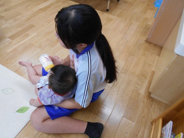 社会に学ぶ「14歳の挑戦」・わかば保育園 公開日 2025/09/03 更新日 2025/09/05 2学年 9月3日(水) 3日目【わかば保育園】0歳児と2歳児のクラスに分かれて、子どものお世話をしています。ミルクを飲ませたり、おやつのサポートをしたりしていました。指示を出す前にお皿を出したり、準備をしたりしてすごく助かっているとお声をいただきました。