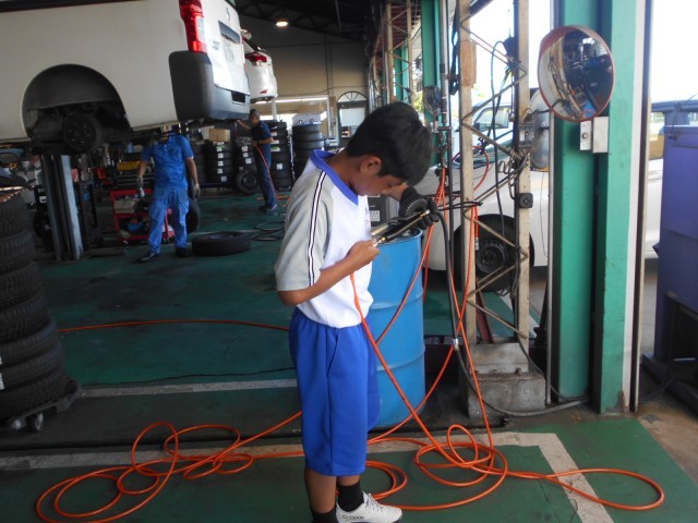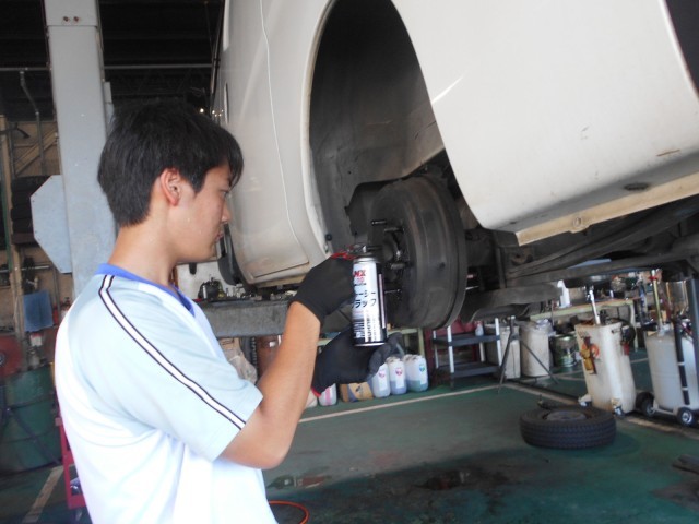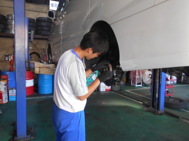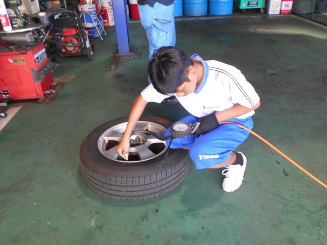 社会に学ぶ「14歳の挑戦」・北陸車検本社工場 公開日 2025/09/04 更新日 2025/09/04 2学年 9月3日(水) 3日目 【北陸車検本社工場】お客様の車やレンタカーの洗車、タイヤを外す手伝い、ブレーキクリーニング、さび止めやタイヤの空気圧点検等の体験をさせてもらいました。体力的に疲れるようですが、整備士さんたちと楽しそうに作業をしていました。 +1