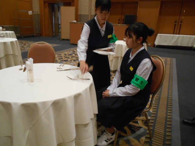 社会に学ぶ「14歳の挑戦」・ANAクラウンプラザホテル富山 公開日 2025/09/04 更新日 2025/09/04 2学年 9月3日(水) 3日目 【ANAクラウンプラザホテル富山】今日は、宴会会場で使われる食器やスプーン、フォークの準備を体験しました。実際に使用するテーブルセットを使って、テーブルマナー、食器の下げ方等を教えていただきました。