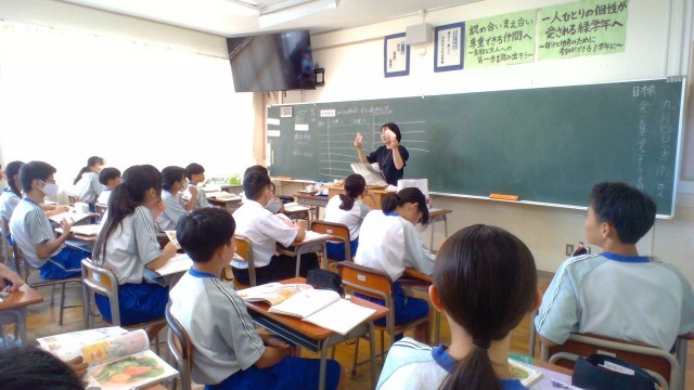 1年・家庭科・私たちの食生活 公開日 2025/09/04 更新日 2025/09/04 1学年 9月4日(木) 3限 1年5組の家庭科では、普段の食生活でよく使われる食材について学んでいます。「目ばかり」「手ばかり」といって、実際の食材に触れ、道具に頼らず身体感覚を使って重さを予想します。「意外と重い!」「こっちの方が軽いよ」生徒たちは、食材同士を比べたり、持ったときの感覚を確かめたりして、話し合いながら予想を立てていました。