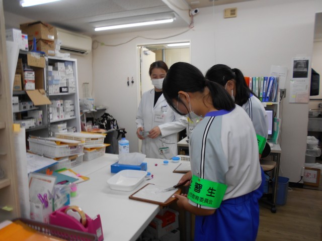 生徒たちは受付業務で笑顔で挨拶することができました。また、聞き慣れない薬が多く、その種類の多さに驚いている様子でした。