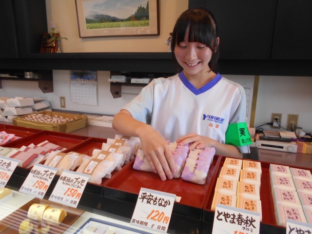 社会に学ぶ「14歳の挑戦」・菓子匠平安堂 公開日 2025/09/04 更新日 2025/09/04 2学年 9月4日(木) 4日目【菓子匠平安堂】今日は菓子箱を折る作業をしました。また、商品の賞味期限シールを貼ったり、らくがんを包んだりしました。お店の方からは、すごく丁寧に作業してくれているとお褒めの言葉をいただきました。今日はレジ打ちにも挑戦します。