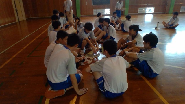 3年・体育・バレーボール 公開日 2025/09/05 更新日 2025/09/05 3学年 9月5日(金) 3限 3年1組の体育の授業です。バレーボールの試合を行い、どのような技能が身についたか、現在の課題は何かを話し合います。 「パスが続くようになってきたよね」「チームワークは良くなっているけど、もう少し声を出した方がいいよ」 リーダーを中心に、活発に話し合いを進める姿がありました。