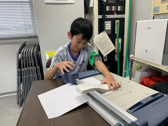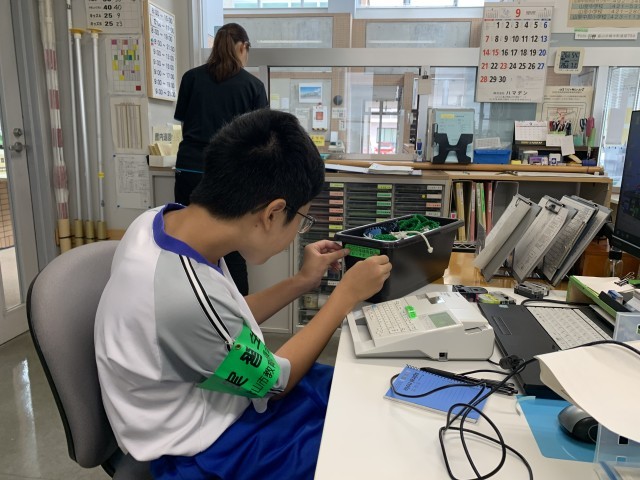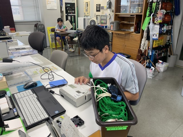 社会に学ぶ「14歳の挑戦」・2000年体育館 公開日 2025/09/05 更新日 2025/09/05 2学年 9月5日(金) 5日目 【2000年体育館】利用者に貸し出しをする際に渡す道具箱のシール貼り等を行いました。「職員や利用者に対してはきはきと挨拶や返事を行っていたり、教わった仕事を最後まで協力してやり遂げてくれたりして関心した」と職員の方からお褒めの言葉をいただきました。