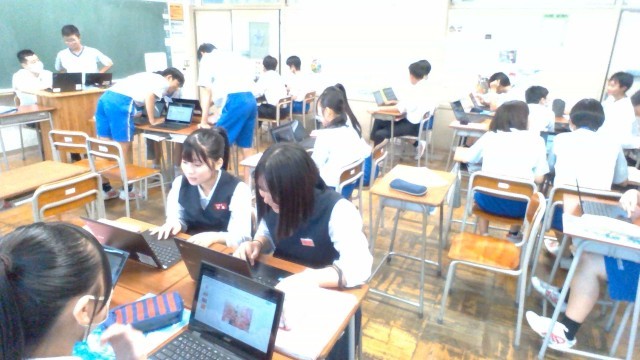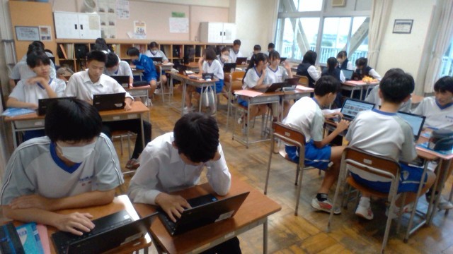 3年・英語・Doscover Japan 公開日 2025/09/12 更新日 2025/09/12 3学年 9月12日(金) 4限 3年4組の英語の授業では、「Discover Japan」と題し、日本の魅力を英語で伝えるプレゼンテーションの準備をしています。「折り紙」「生け花」など日本文化に関するものから、「ブラックラーメン」や「卵かけごはん」まで、それぞれが興味をもった題材について調べています。