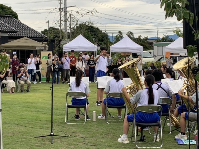 9月13日(土)の部活動・その2 公開日 2025/09/13 更新日 2025/09/13 部活動 9月13日(土) 16:00 吹奏楽部は、校区で開催されている『青空フェスティバル』に来ています!たくさんのお客さまの前でコンクールで演奏した曲やJ-POPを演奏しています。