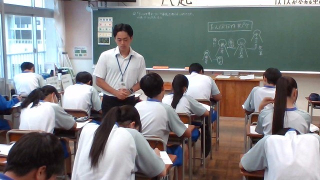 3年・道徳・たんぽぽ作業所 公開日 2025/09/18 更新日 2025/09/18 3学年 9月18日(木) 3限 3年1組、教育実習生による道徳の授業です。生徒は、仕事のやりがいや働くうえで大切なことについて考えを深めていました。素直に自分の意見を発表することのできる雰囲気の授業でした。