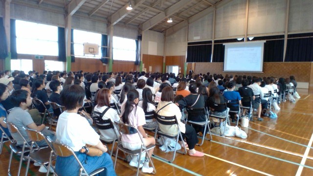 本校体育館にて、来年度入学予定のお子さんと保護者の方を対象にした説明会が行われました。