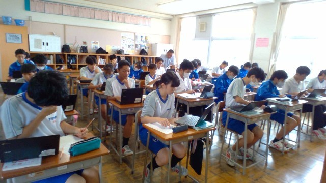 学校公開日・3年・授業風景 公開日 2025/09/20 更新日 2025/09/20 3学年 9月20日(土) 3限 学校公開日、3年生の授業の様子です。どのクラスも集中して取り組んでいます。 (写真 1枚目:3年1組 国語「故郷」)(写真 2枚目:3年2組 数学「関数 y=ax2」)(写真 3枚目:3年3組 英語「Unit4」)(写真 4枚目:3年4組 社会「多数決について考えよう」)(写真 5枚目:3年5組 理科「力の分解」) +2