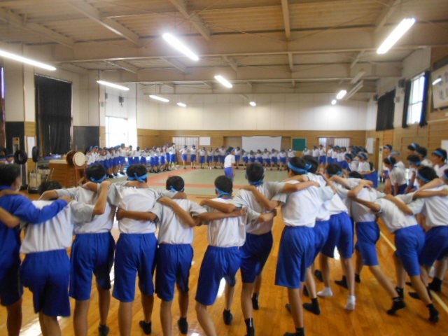 団活動では、どの団もリーダーを中心に大きな声で掛け声を出し、練習に熱が入っています。