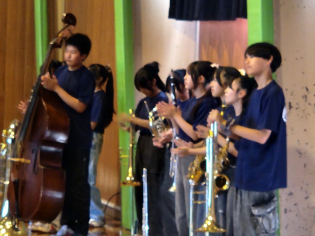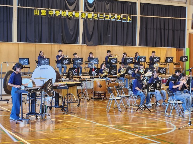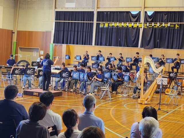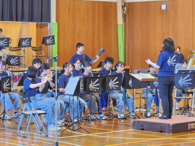 吹奏楽部・ミニコンサート・その2 公開日 2025/09/28 更新日 2025/09/28 部活動 9月28日(日) 11:00 第一部●マーチ「メモリーズ・リフレイン」●Mont Fuji●ジークフリート第二部●Tomorrow第二部の一曲目「Tomorrow」は、1、2年生のみでの演奏でした。先輩の指導の成果もあり、まとまりのある演奏から、聴く人を前向きな気持ちにさせてくれました。傍らで見守る3年生の姿からも温かい雰囲気が感じられました。 +2