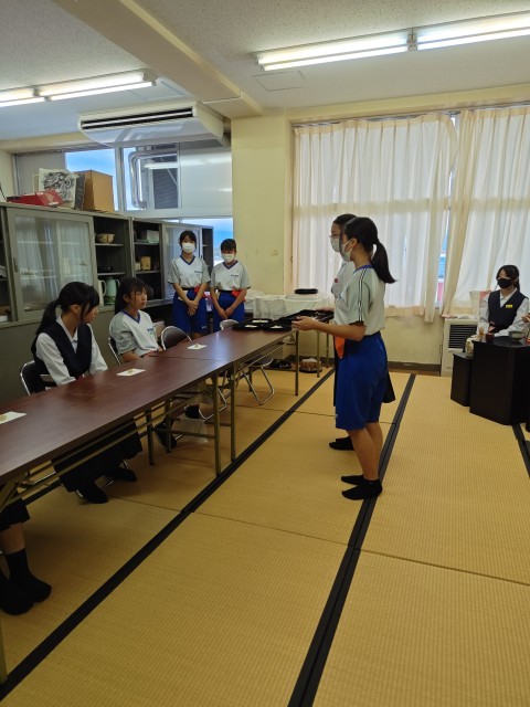 9月30日(火)の部活動 公開日 2025/09/30 更新日 2025/09/30 部活動 9月30日(火) 県中文祭に向けてお点前、お運びの練習をしています。半東はお客様に向けて挨拶等の言葉を言う練習をしています。