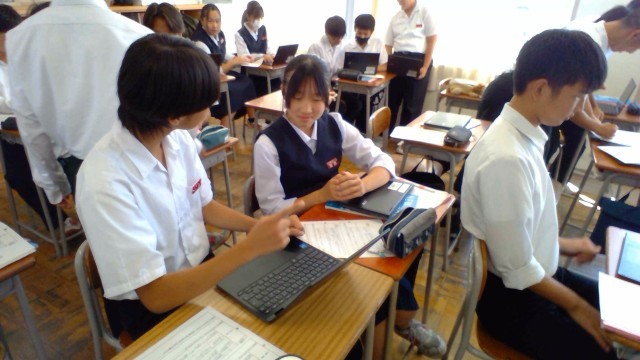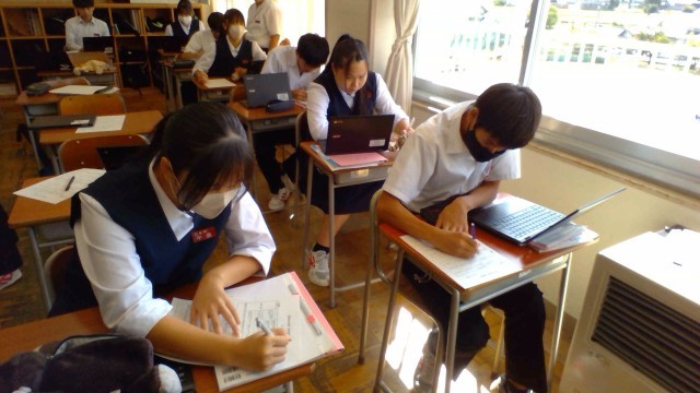 3年5組の英語では、日本文化についてのスピーチ発表の準備をしています。
