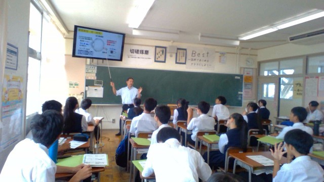 2年・理科・刺激と反応 公開日 2025/10/03 更新日 2025/10/03 2学年 10月3日(金) 2限 2年4組の理科の授業です。目や耳、鼻などの感覚器官が、外部の刺激を取り入れる仕組みを学んでいます。目の瞳孔が開く仕組みや、動物が獲物をとらえる視野の人間との違い、今後コンピュータが人間の知覚を代替できるのかどうか…など、生物の感覚と刺激にまつわる様々な話題が登場しています。生徒たちは興味津々な様子で、色々な発言や質問をしながら話を聴いていました。
