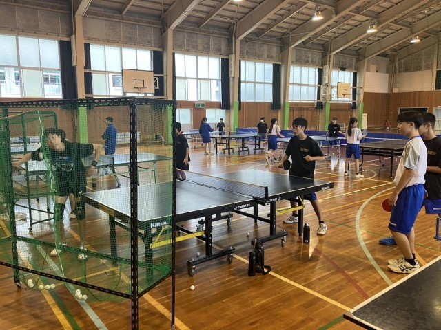 10月5日(日)の部活動・その2 公開日 2025/10/05 更新日 2025/10/05 部活動 10月5日(日) 10:30 卓球部は、大会前に体育館を使える最後の練習です。サーブの回転に対応したレシーブの返し方等、実践的なテクニックを工夫して練習しています。