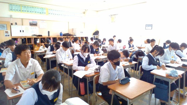 2年・授業風景 公開日 2025/10/07 更新日 2025/10/07 2学年 10月7日(火) 3限 2年生の授業の様子です。どのクラスも落ち着いて授業に取り組んでいます。 (写真 上:2年1組 社会「天下泰平の世の中」)(写真 中:2年2組 英語「英作文を書こう」)(写真 下:2年4組 国語「ヒューマノイド」)
