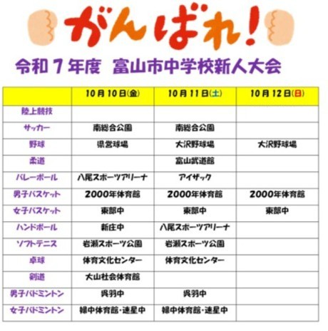 明日10日(金)から「富山市中学校新人大会」が始まります。