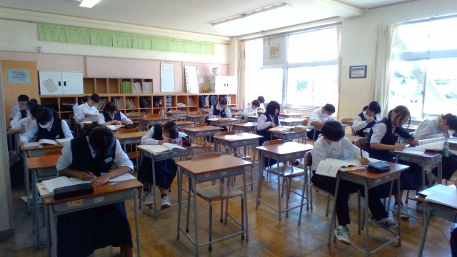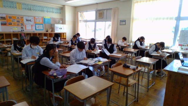 学校での様子 公開日 2025/10/10 更新日 2025/10/10 山室中学校のページ 10月10日(金) 9:40 今日は、部活動の富山市新人大会があります。試合に出場しない生徒は、学校で中間考査に向けて自習をしています。窓から心地良い秋風が吹く中、静かに集中してそれぞれの課題に取り組んでいます。 (写真 1,2枚目:1年生)(写真 3,4枚目:2年生)(写真 5,6枚目:3年生) +3