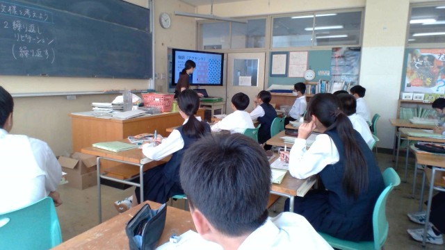 1年・美術・オリジナル文様を作ろう 公開日 2025/10/17 更新日 2025/10/17 1学年 10月17日(金) 5限 1年5組の美術の授業です。対称(シンメトリー)、繰り返し(リピテーション)、階調(グラデーション)など、文様をデザインする際の基本的な技術についてまとめています。今日学習したことを活かし、これからオリジナルの文様を作成していきます。
