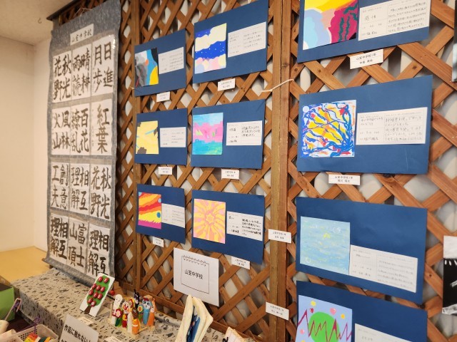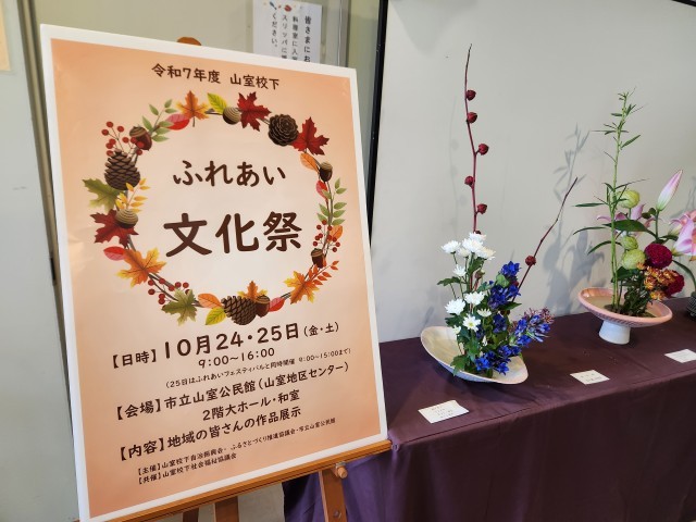 山室校下 ふれあい文化祭 公開日 2025/10/25 更新日 2025/10/25 山室中学校のページ 10月25日(土) 山室地区センターでは、「山室校下 ふれあい文化祭」が開催されています。山室中学校からも、書道、美術、家庭科の作品が展示されています。会場では、展示だけでなく、いろいろな催しが企画されており、たくさんの人で賑わっていました。 +3