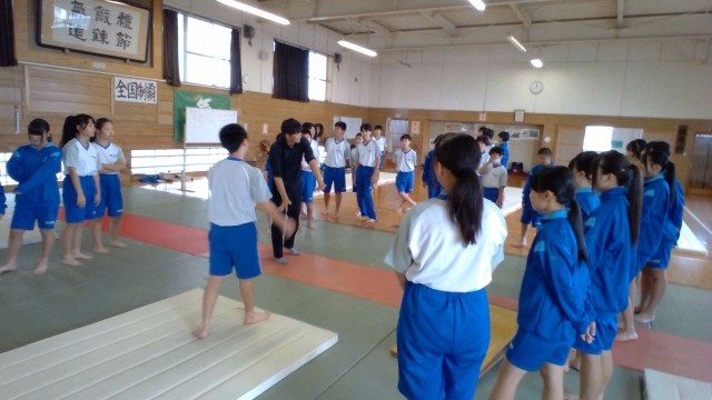 頭の位置や手のつき方などのポイントに気を付け、声を掛け合って技の完成を目指します。