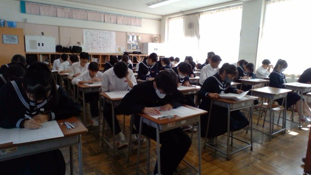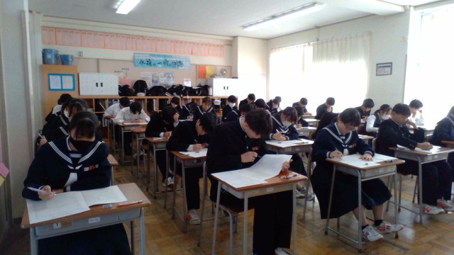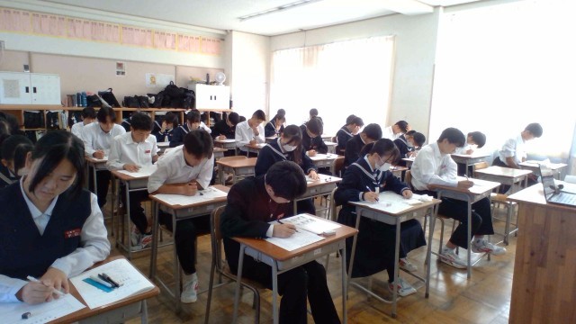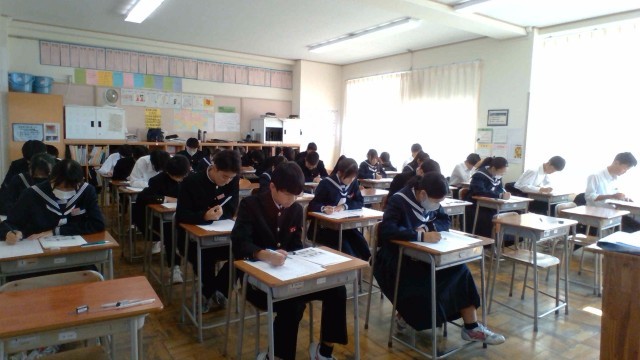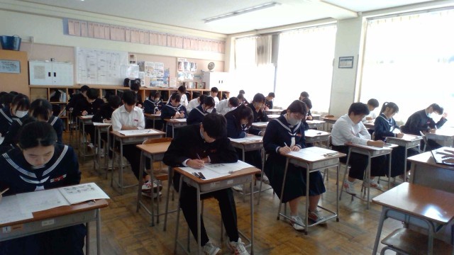 3年・実力テスト(英語) 公開日 2025/10/29 更新日 2025/10/29 3学年 10月29日(水) 4限 3年生は、実力テストを受けています。定期テストや中教研学力調査など、試験が重なる時期ですね。合唱コンクールの準備とも両立しながら頑張っています。 (写真 1枚目…3年1組)(写真 2枚目…3年2組)(写真 3枚目…3年3組)(写真 4枚目…3年4組)(写真 5枚目…3年5組) +2