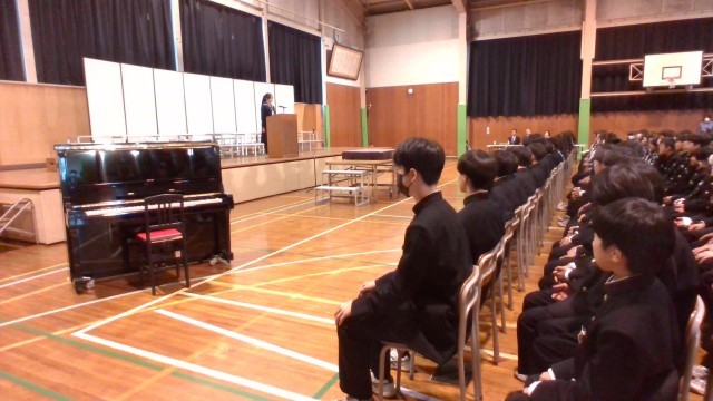 学習発表会・合唱コンクール・その1 公開日 2025/11/01 更新日 2025/11/01 山室中学校のページ 11月1日(土) 9:30 いよいよ、令和7年度学習発表会・合唱コンクールが始まりました。開会式では、校長先生、合唱コンクール実行委員長の挨拶があり、生徒は、気持ちを引き締めて聴いていました。「全音入魂~一人一人が声を響かせ、最高のハーモニーを~」の合唱コンクールスローガンの下、クラスの心を一つにして、歌声を響かせます。