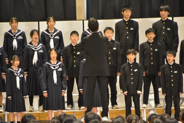 学習発表会・合唱コンクール・その7 公開日 2025/11/01 更新日 2025/11/01 山室中学校のページ 11月1日(土) 【第1学年 合唱コンクール】順番4 1年1組 「きみにとどけよう」 +2