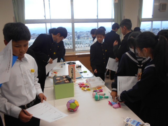 学習発表会・合唱コンクール・その16 公開日 2025/11/01 更新日 2025/11/01 山室中学校のページ 11月1日(土)【展示鑑賞】写真1・2枚目:美術科「色・形の挑戦」「ピクトグラムデザイン」写真3枚目:家庭科部「刺繍作品」写真4・5枚目:家庭科「幼児のおもちゃ」 +2
