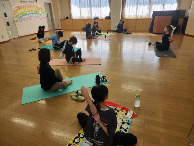PTA健全育成委員会によるヨガ教室 公開日 2025/11/08 更新日 2025/11/08 PTA 11月8日(土) 10:00 PTA健全育成委員会が主催されたヨガ教室が山室地区センターで開催されました。ゆったりとしたBGMが流れる中、体を伸ばし、心身ともにリラックスしました。日頃のストレスを緩和するよい体験となったようです。