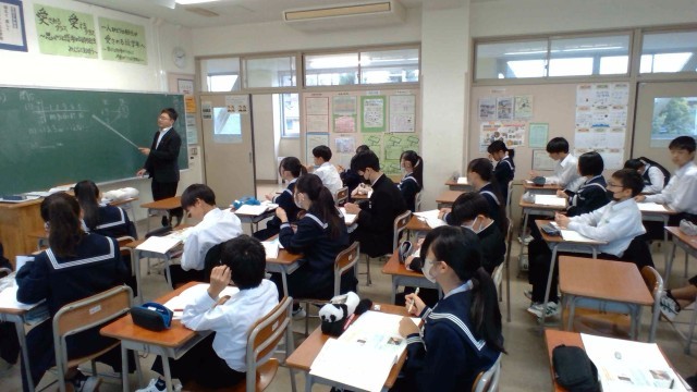 1年・授業風景 公開日 2025/11/11 更新日 2025/11/10 1学年 11月10日(月) 1限 1年生の授業の様子です。校外学習が終わり、雨模様の月曜ですが、生徒たちは朝から元気いっぱいに学んでいます。 (写真 1枚目:1年1組 数学「関数」)(写真 2枚目:1年2組 理科「質量パーセント濃度」)(写真 3枚目:1年3組 社会「ヨーロッパ州」)(写真 4枚目:1年4組 保健体育「マット運動」)(写真 5枚目:1年5組 社会「ヨーロッパ州」) +2