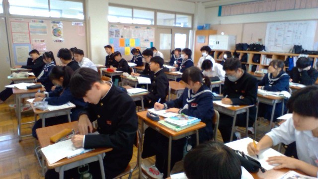 3年・理科・エネルギーのまとめ 公開日 2025/11/11 更新日 2025/11/10 3学年 11月10日(月) 4限 3年2組の理科の授業です。位置エネルギーや運動エネルギー、熱エネルギーなど、これまでに学習してきた様々なエネルギーについてまとめています。それぞれのエネルギーを求めるための計算方法が異なるので、3年間で学んできたことの復習がとても大切になってきます。