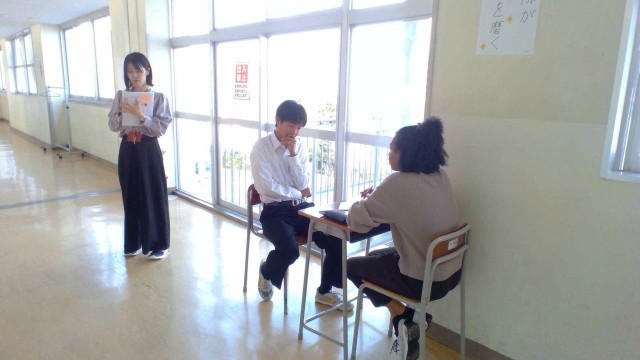 などのフレーズを駆使し、おいしいお寿司のお店を紹介したり、「That's nice!」「Me too!」など相槌を打ったりして、楽しく会話していました。