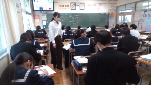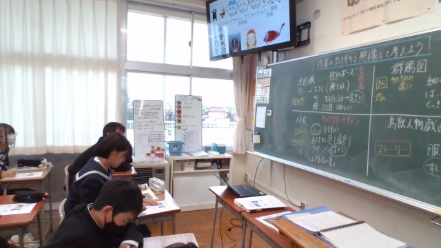 2年3組の美術の授業では、動物が描かれた日本画の鑑賞を行っています。